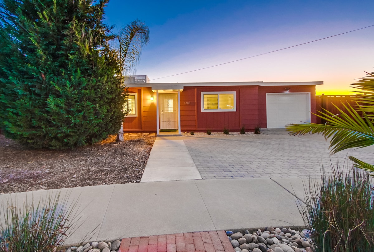Escape to this peaceful getaway, only 3/4 mile to the beach! this home has a grill & ample outdoor seating & dinning table, outdoor tv to watch the games, or cuddle on the outdoor sofa & watch movies with the fire pit rolling, & a glass of wine, sit in the hot tub, or enjoy the sauna & watch the sunsets. The renovated home sleeps 6 has 2 bedrooms, & 1 bath, a fold out queen couch. Spend a day at Legoland, Del Mar Racetrack, Disneyland, or walk to the beach. This is not your party house