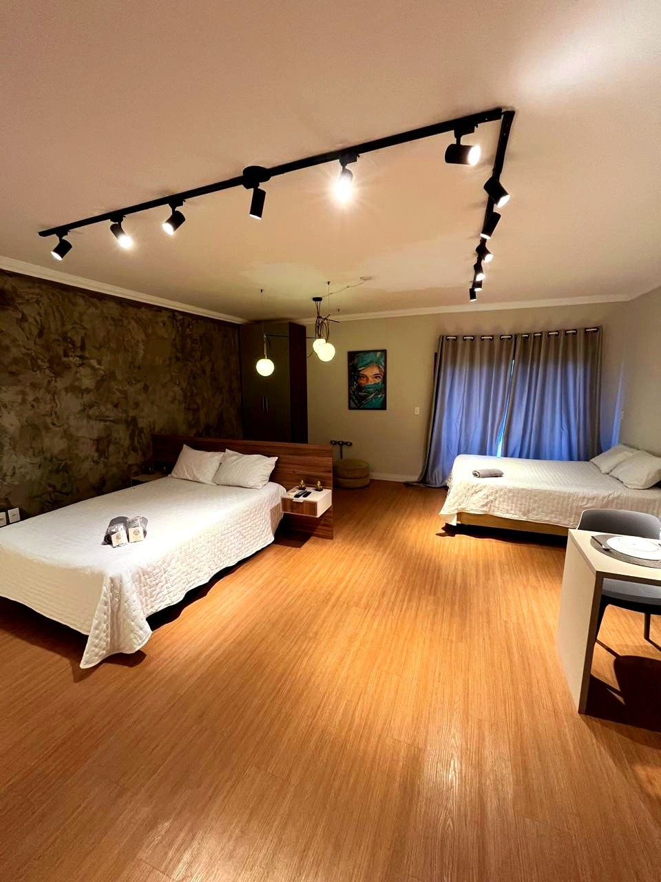 Moderna un mājīga studija pašā Sorokabas sirdī! Laipni lūdzam jūsu ideālajā atpūtas braucienā Sorokabā! Mūsu studija tika veidota tā, lai piedāvātu praktiskumu, komfortu un stilu tiem, kas meklē klusu mājokli gan darbam, gan atpūtai. Mājoklī, kas atrodas stratēģiski svarīgā pilsētas reģionā, ir: • Divguļamā gulta • Gaisa kondicionētājs • Virtuve ar mikroviļņu krāsni, ledusskapi un piederumiem • Wi-Fi un TV • Privāta vannasistaba ar karstu dušu un mīkstiem dvieļiem • Neatkarīga un droša ieeja