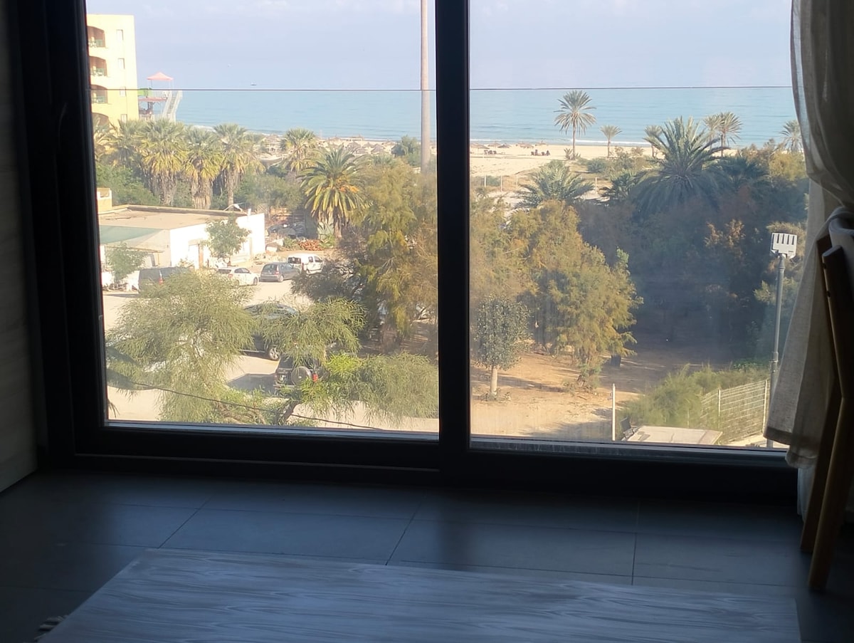 Très bel appart pieds dans l'eau à Sousse (Résidence le Monaco - Partie Hôtel - Bloc B) avec accès a la piscine de la résidence et à la plage, et une place de parking. Finement équipé (Salon, Terrace vue mer, 2 chambres à coucher, salle de bain + salle d'eau, cuisine équipée, climatiseurs). L'appartement est idéalement place sur la route touristique de Sousse près de toutes les commodités (restaurants, bars, cafés, etc..), tout en étant près du centre-ville.