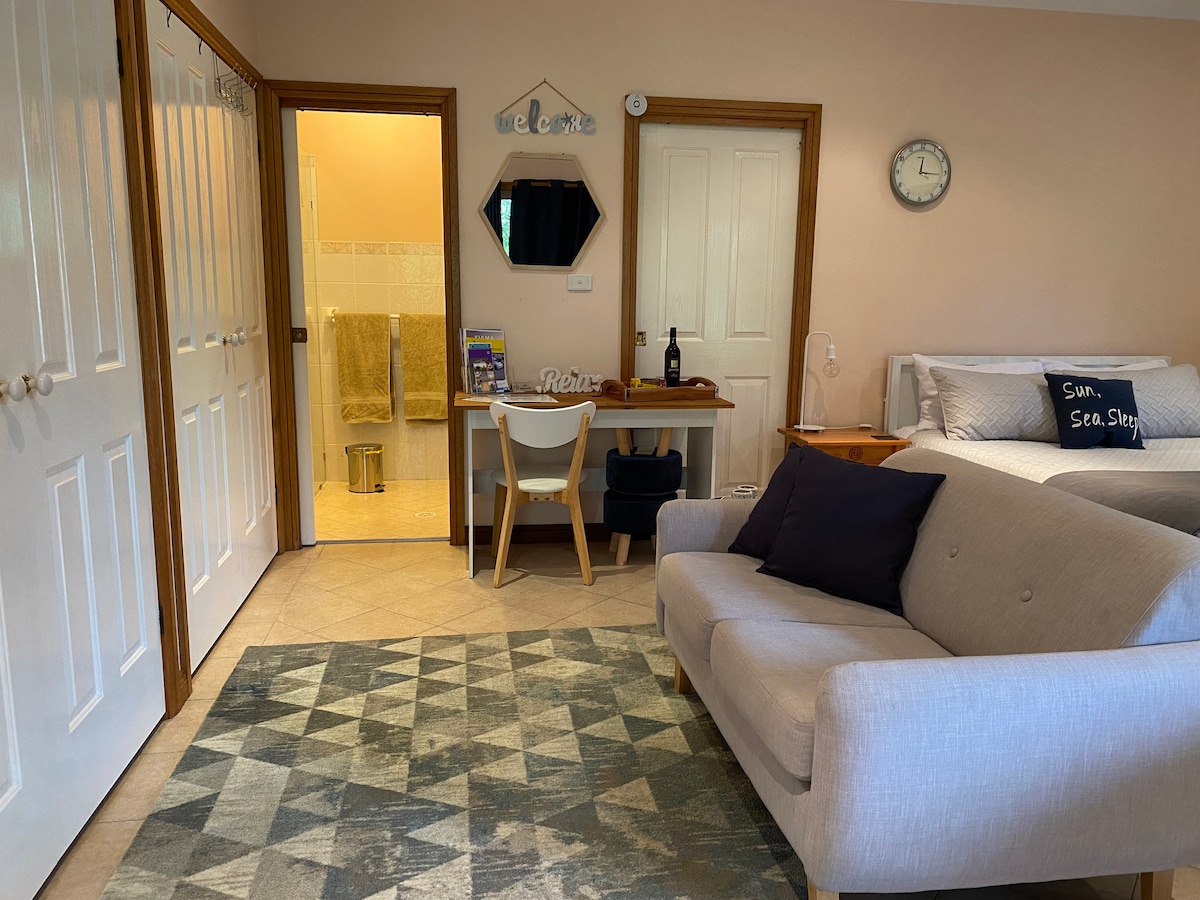 Mūsdienīga, ērta privāta studija, kas ir gatava atpūtai, gulēšanai un atpūtai. (Papildu gulta pēc pieprasījuma + maksa) Bezmaksas Wi-Fi, Cromecast, vīna pudele, vieglas brokastis pirmās divas naktis. Mūsuprāt, mēs atrodamies fantastiskā vietā, tikai 5 minūšu brauciena attālumā no Shellharbour Harbour, Shell Cove, Stockland Shellharbour iepirkšanās, īsa brauciena attālumā no Wollongong, Kiama, vietējām vīna darītavām, Illawarra lido pa Dienvidu augstieni. (Varētu būt 1 bērns, kas jaunāks par 2 gadiem ceļojuma gultiņā, pēc pieprasījuma var nodrošināt augstu krēslu).