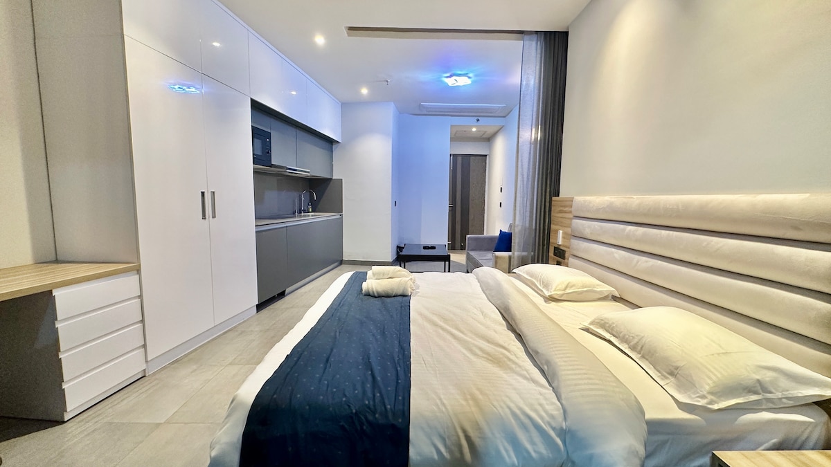 Laipni lūdzam Checkinandchillout mājokļos – jūsu Sky-High Retreat! Izbēdziet no ikdienas un izbaudiet greznību virs pilsētas Supernova Spira - Indijas trešajā augstākajā ēkā. Šī mājīgā, bet izsmalcinātā studija atrodas pašā Noidas, 94. sektora sirdī, un no tās paveras elpu aizraujošs skats uz mirdzošo Jamunas upi un žilbinošo pilsētas siluetu. Neatkarīgi no tā, vai esat šeit darījumu braucienos vai atpūtā, šī atpūta pilsētā nodrošina relaksējošu un neaizmirstamu uzturēšanos. Mēs arī nodrošinām dienu par zemāku cenu. DM, lai uzzinātu vairāk :)
