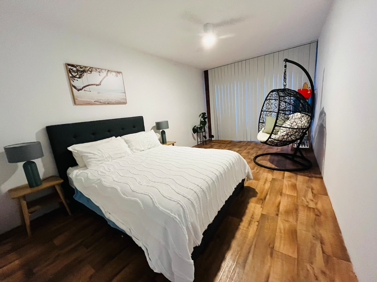 Burvīgi un ērti! Atrodas tuvu pilsētai Kensingtonā, šī privātā telpa piedāvā komfortu un ērtumu. Izbaudiet plašu istabu ar divguļamo gultu, rakstāmgaldu, virtuvīti un drēbju skapi, kas atrodas mierīgā vidē. Atjaunotajā mājoklī ir sildītājs vēsiem rītiem. Jūtieties ērti ar apgrieztā cikla aircon un bezmaksas Wi-Fi. Tuvumā esošās kafejnīcas un ēdieni līdzņemšanai atvieglo maltīšu pasūtīšanu. Bezmaksas autostāvvieta uz ielas un sabiedriskā transporta pieejamība nodrošina ērtu ceļošanu. Vienguļamā gulta vai gultiņa ir pieejama pēc pieprasījuma.