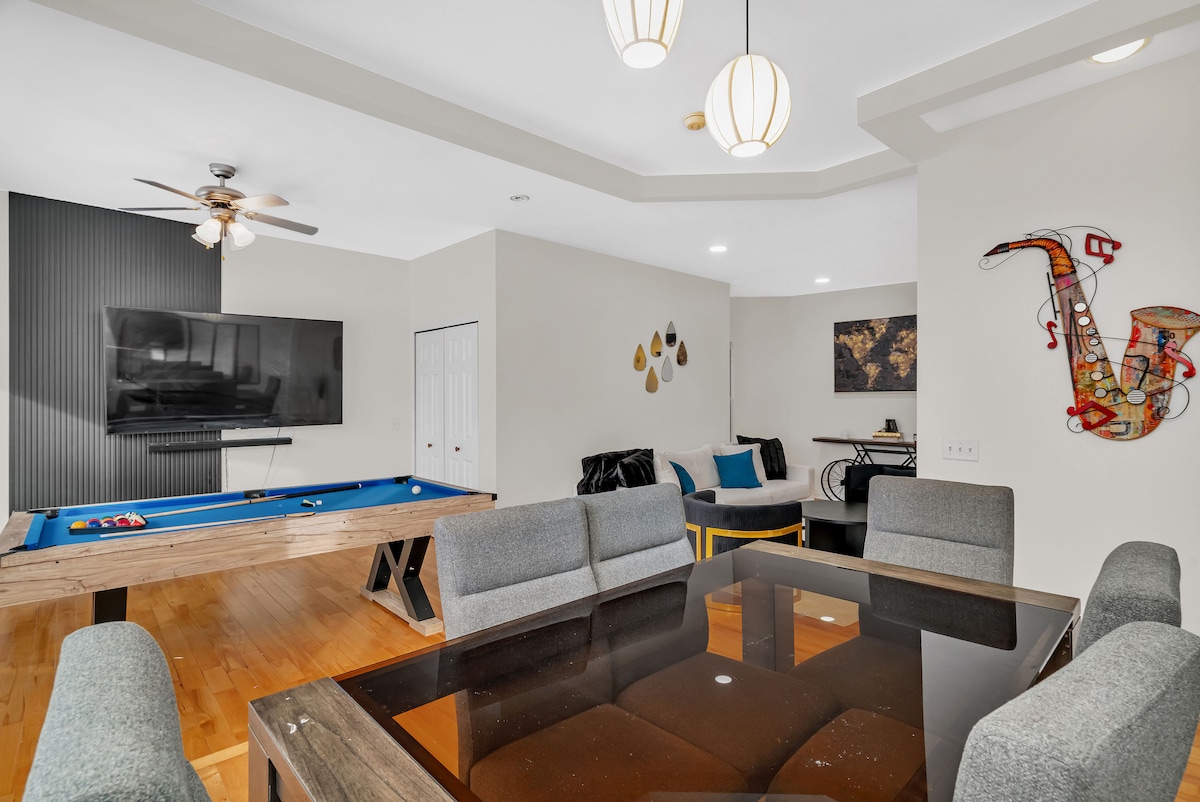 Lieliska atrašanās vieta. Nesen atjaunota. Telpa: šī ir jauna viesu istaba mana mājokļa pagrabstāvā. Apartamenti ir aprīkoti ar pilnu virtuvi ar augstas kvalitātes ierīcēm. Apartamentos ir liela vannasistaba, guļamistaba ar jaunu "queen" izmēra matraci, kā arī veļasmašīna un žāvētājs. Apartamenti piedāvā mierīgu un ērtu mājokli. Divu kvartālu gājiens jūs aizvedīs līdz piepilsētas vilcienam, metro sviestmaizēm, itāļu delikatesēm, CVS aptiekai un Starbucks.