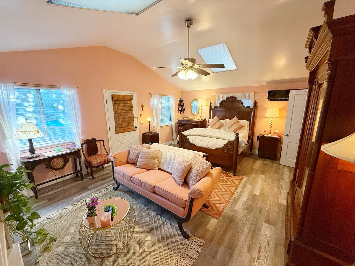 Privāts bungalo ar atsevišķu ieeju vēsturiskā tudora mājoklī. Plaša guļamistaba ar "king" izmēra gultu, virtuvīti un vannasistabu. Ir pieejami divi velosipēdi, kabeļtelevīzija, internets, maiņstrāva, pludmales dvieļi, autostāvvieta, uzkodas, kafija un ūdens. Pastaigas attālumā līdz pludmalei, restorāniem, veikaliem, vīna dārziem, pārtikas veikaliem, saimniecībām un zivju tirgum. Džitnija pietura ir viena kvartāla attālumā!