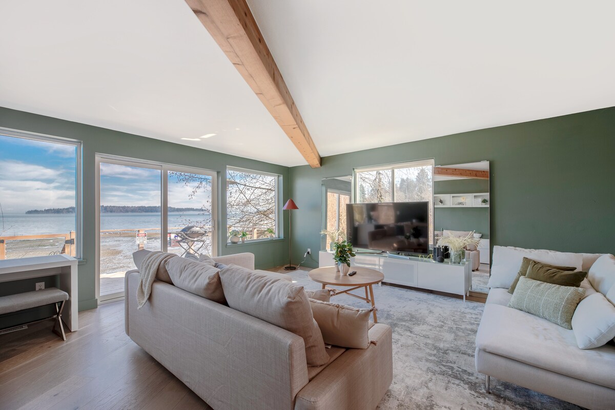 Iepazīstieties ar rudens sezonu un brīvdienām mūsu mājīgajā Airbnb mājoklī ar skaistiem skatiem uz Pjudžitsaundu, Sietlu un skaidrās dienās arī uz Rainier. Vērojiet laikapstākļu maiņu pa lieliem logiem, baudot komfortu. Mēs esam dažu minūšu attālumā no prāmja uz Sietlas centru un netālu no burvīgām mazpilsētām. Apkaimē, pa kuru var staigāt, ir pieejams krogs, bibliotēka, ēdināšanas vietas un kafejnīca/ikdienas preču veikals, kā arī mierīgas vietas, kur pastaigāties un izbaudīt ainavu. Ideāli piemērots arī klusai sezonālai atpūtai