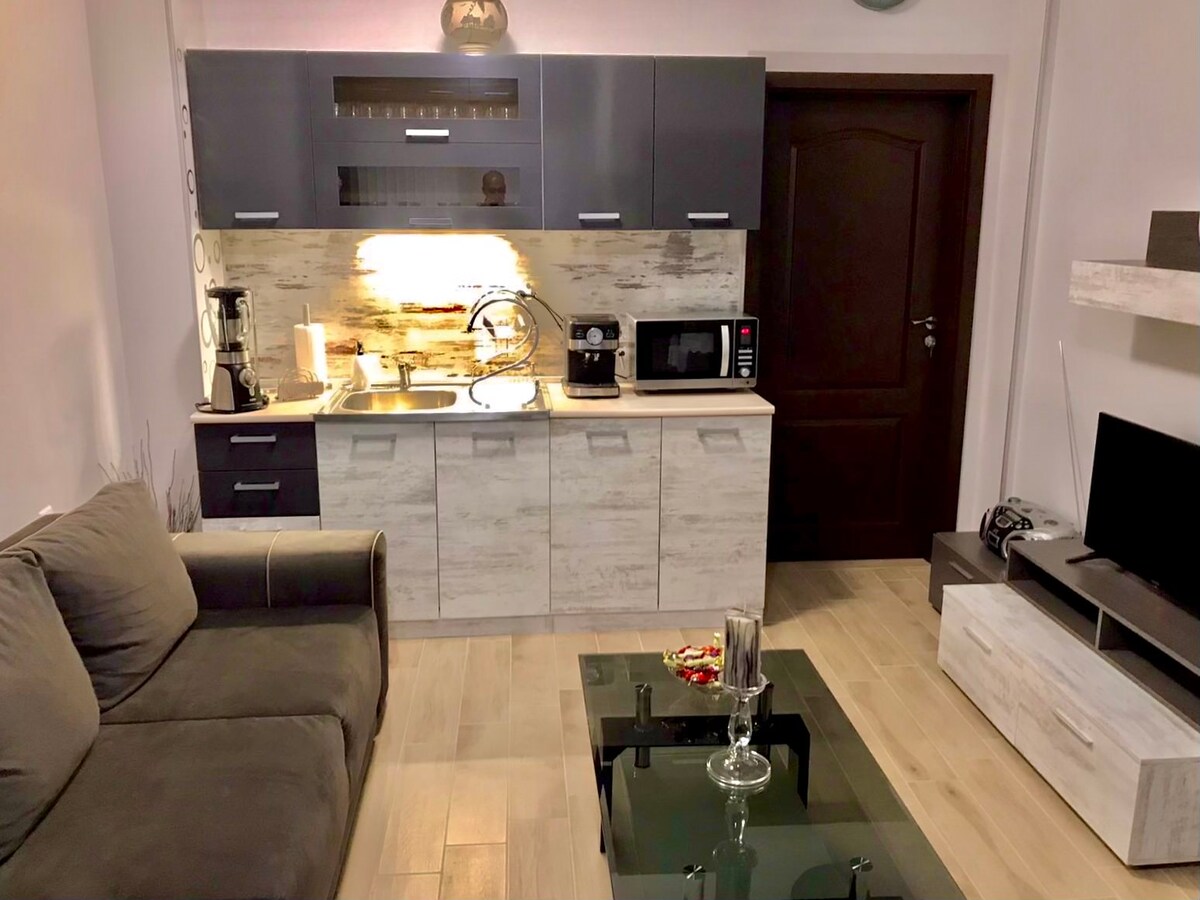 ✨Pamostieties no satriecošiem kalnu skatiem šajā mājīgajā, tikko atjaunotajā dzīvoklī Vratsā, kas atrodas tikai 10–15 minūšu gājiena attālumā no dzīvīgā pilsētas centra. ✨ Ideāli piemērots dabas mīļotājiem, ar ērtu piekļuvi Vrachanski Balkānu takām un Ledenikas alai. Atpūtieties uz balkona, pagatavojiet savas iecienītākās maltītes pilnā virtuvē un baudiet ātru Wi-Fi. Ar diviem lielveikaliem pāri ielai un tuvumā esošajām autobusu un dzelzceļa stacijām viss nepieciešamais ir sasniedzams. Jūsu ideālais mājoklis atsvaidzinošai atpūtai nedēļas nogalē.
