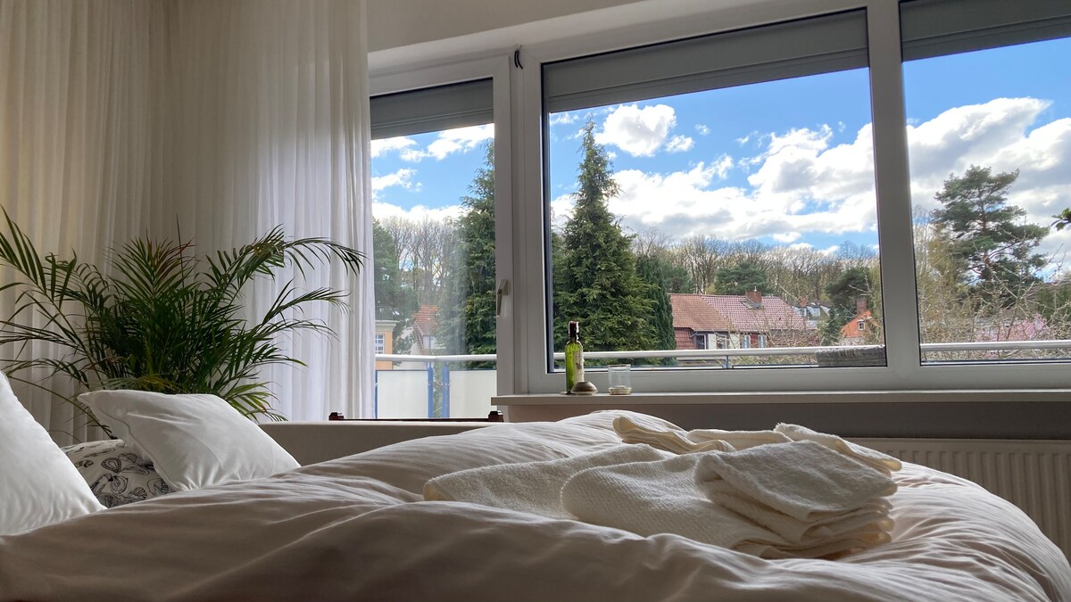 Atpūtieties šajā klusajā, stilīgajā mājoklī. Jūsu skats paveras uz laukiem pa dārziem uz mežu, tikai no Papardes jūs varat dzirdēt pilsētu ļoti klusi. Ar metro un autobusu jūs varat ātri nokļūt līdz centram. Lidl un Aldi atrodas metro stacijā, daudzi veikali un mūsu iecienītākie daudzdzīvokļu mājas atrodas divu pieturu attālumā. Dzīvoklī jūs esat netraucēts, varat gatavot, mazgāties, slinkot, sēdēt uz balkona un dzert glāzi vīna. Un iepazīt Berlīni.