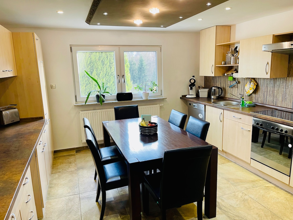 Within a 6000 sqm plot below the Veste Coburg you get a bungalow with every comfort. 3 rooms, 100 sqm, with kitchen (equipped with everything), two bathrooms, secluded terrace with large garden. Absolutely quiet and yet right in the middle of it all. 5 minutes by car and 10 minutes on foot to the center. High-quality furnishings. Floor-to-ceiling windows with a wonderful view of nature and Coburg.
