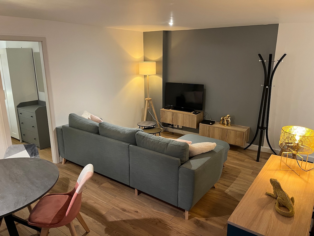 Neliela, mājīga un atjaunota aplikācija, Mulhouse centrs, netālu no papildērtībām (veikali, vēsturiskais centrs un tirgus 500 m). Guļamistaba 160x200, dzīvojamā zona ar aprīkotu virtuvi un dīvānu pārveidojams 150x200, vannasistaba ar vannu. Pilnībā aprīkots: - gultasveļa (palagi, dvieļi) - pamatprodukti (kafija, tēja, garšvielas, veļas mazgātava, tualetes papīrs...).