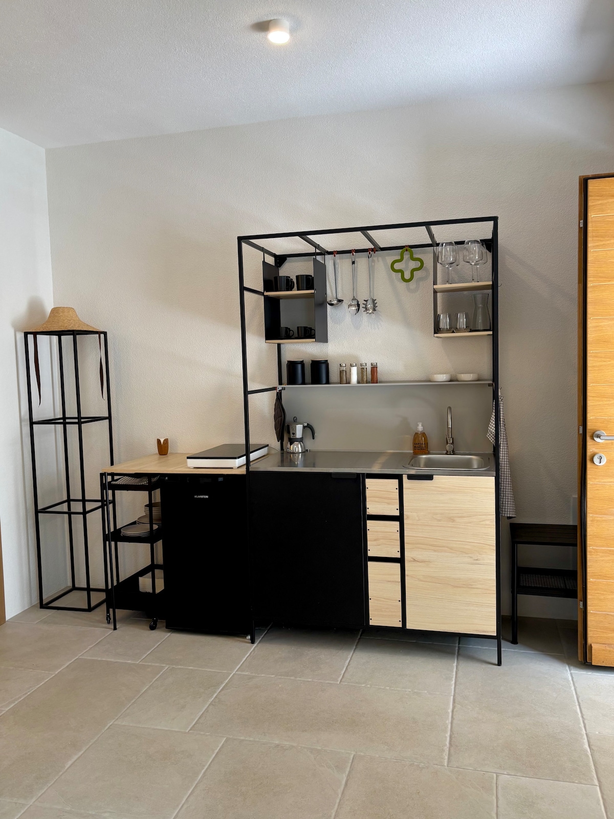 mini dzīvoklis ar neatkarīgu ieeju, kas sastāv no divvietīgas guļamistabas, istabas ar divvietīgu dīvāngultu un virtuvīti un privātas vannas istabas ar ērtu dušu. Dzīvoklis atrodas blakus saimnieku mājai. Ir laipni aicināti maz-vidējs Mājdzīvnieki. Tīmeklī ir 2 suņi un 1 kaķis.