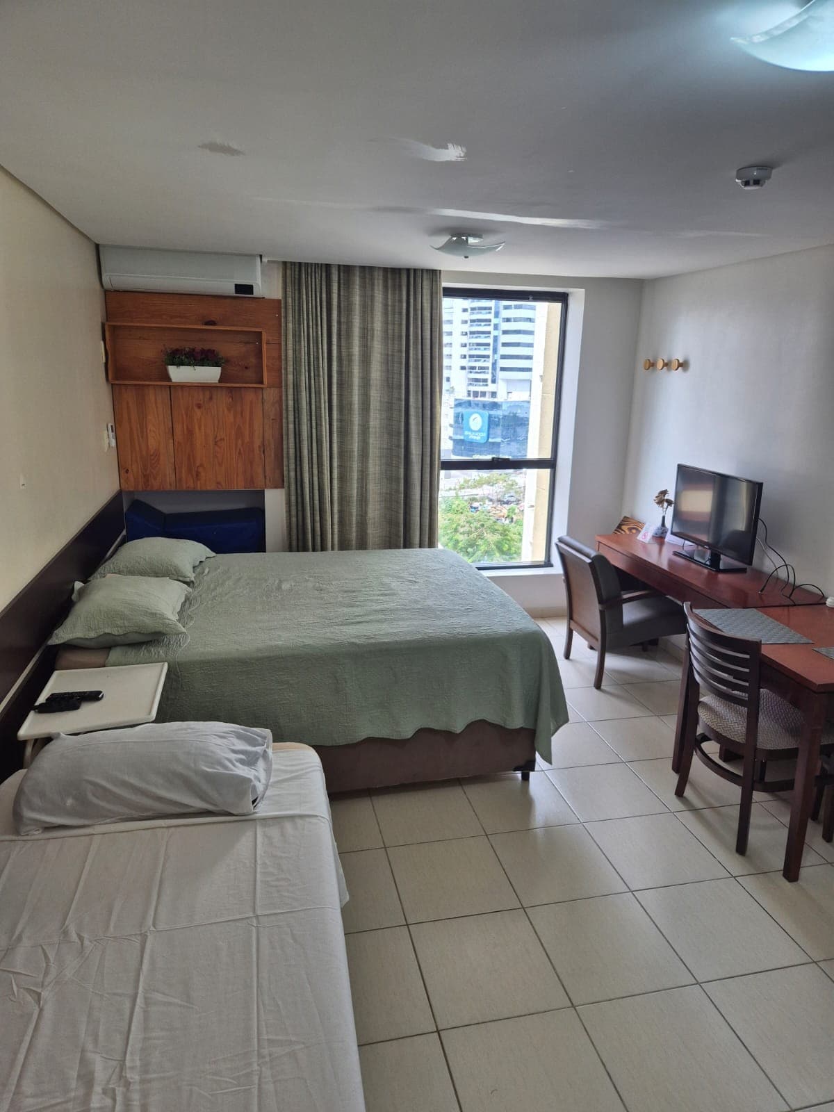 ✔️ VIEDĀ mini studija: balss vadība televizoram, gaisa kondicionētājam un apgaismojumam. ✔️ Diennakts reģistrēšanās un konsjeržs, baseins, sporta zāle. ✔️ 140 m no klusas pludmales. ✔️ Aprīkota virtuve. ✔️Autostāvvieta ir pieejama atkarībā no pieejamības. ✔️ Tuvu lielveikaliem, veikaliem, restorāniem. ✔️ Cilvēkiem ar īpašām vajadzībām pieejams transports. ✔️ Ātrs internets + viedtelevīzija. Vide ✔️ ar gaisa kondicionētāju. ✔️ Klusa atrašanās vieta, bet netālu no bohēmiskā Rio Vermelho. ✔️ Divguļamā gulta ar spilvendrānu
