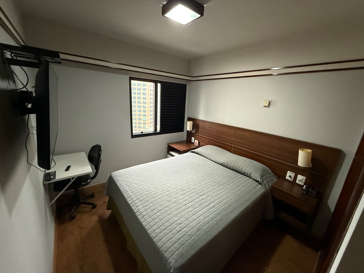 Welcome! Located in Jardins, SP, this modern studio offers an amazing view, close to Oscar Freire and Avenida Paulista. Fully furnished, it features air conditioning, a double bed, a fully equipped kitchen, and a complete bathroom. The building has a gym, rooftop pool with a bar, laundry facilities, and 24-hour reception. Entrance is via electronic code. Maximum of two guests; prior registration of all visitors is required.