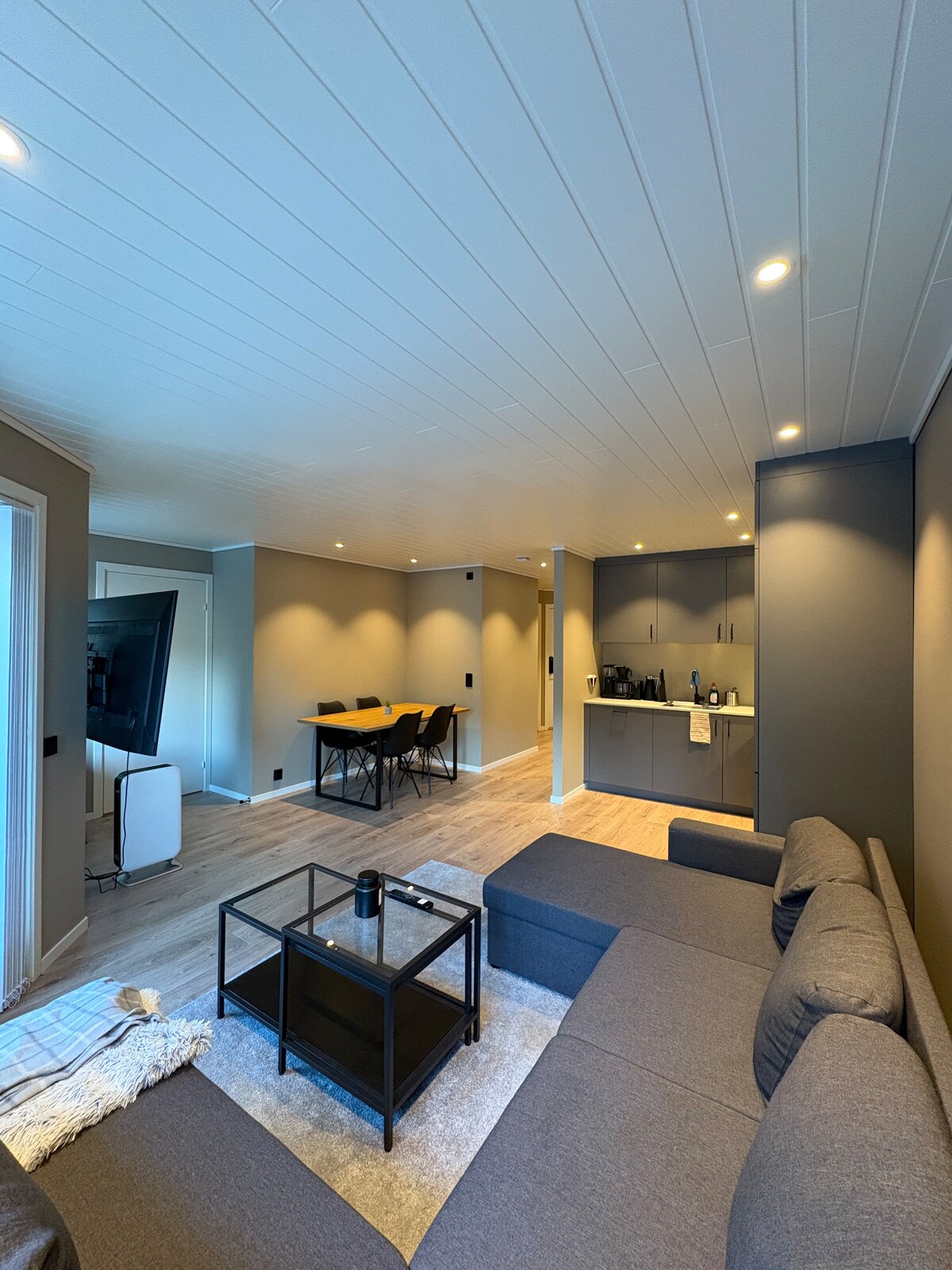 Sokkelleiligheit ar jauku skatu uz Sogndalas pilsētas centru. Dzīvoklī ir guļamistaba, vannasistaba, dzīvojamā istaba un virtuve vienā. Dzīvoklī ir veļas mazgājamā mašīna. Guļamistabā ir 160 cm gulta. Dzīvoklī ir dīvāngulta ar virsmatrašu matraci (140 cm). Ja nepieciešams, novietojiet mazuļu gultiņu un augstos krēslus, ja tādi ir. Vieta automašīnas novietošanai.