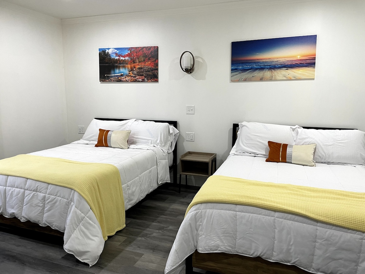 Welcome to your peaceful retreat at Watson Woods. Your 2-room suite blends natural charm with comfort, offering a warm, inviting atmosphere in the heart of nature. The space features chairs, closet, and dresser. The comfortable queen and full-size beds are complete with crisp linens, perfect for unwinding after a day of work or exploration. The suite has a 50" TV with Roku, free wi-Fi and minifridge. The private en-suite full bathrooms have towels and all essentials provided.