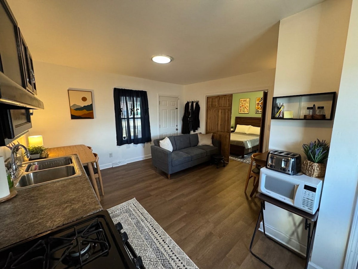 Dzīvojiet pilsētas dzīvi šajā centrā esošajā loftā, kas veidots ar daudzām vietējām mākslu un pēc pasūtījuma būvētām mēbelēm. Mūsu lofts ir atvērts grīdas plāns ar augstiem atklātiem griestiem un ķieģeļiem. Izklaidējieties, spēlējot mūsu pilna izmēra retro arkādi un spēļu automātu. Un, kad esat gatavs gulēt, jums PATIKS Saatva matracis. Atrodas pašā pilsētas centra centrā, un to ieskauj labākie restorāni un aktivitātes. Visi viesi, kas atrodas virs Abreo restorāna, uzturēšanās laikā saņem 10% atlaidi