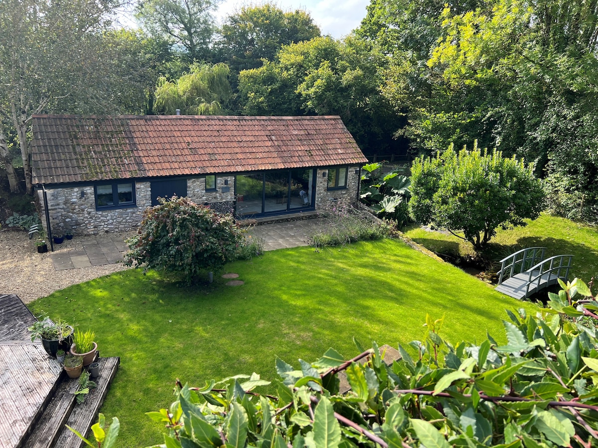 The Old Cow Byre is a unique hideaway in a tranquil valley, less than 20 minutes from the Jurassic Coast's stunning beaches. Perfect for a romantic break. Lounge on the balcony floating over your own private wildflower meadow. Have dinner watching the sun sink behind the valley. Sit round the woodburner for cosy evenings in, or round the fire pit outside wrapped in blankets. Discover country pubs with beer out of the barrel. Take walks from the front door or along the South West Coast Path.