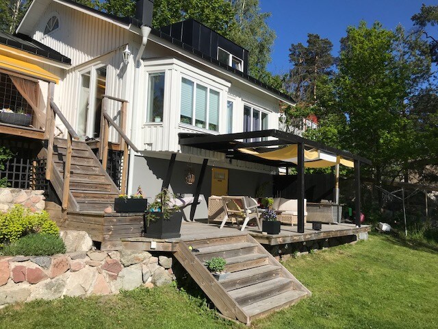 Mājoklis ar fantastisku atrašanās vietu pie jūras tikai 10 metru attālumā no ūdens. Ar skatu uz Stokholmas līci, varat vērot laivas un kuģus, kas peld gar māju, kurai ir terase ar skatu uz jūru. Māja atrodas tikai 12 km attālumā no Stokholmas centra un ir atsevišķi no galvenās ēkas, kurā mēs paši dzīvojam. Dabas rezervāts pastaigām un skriešanai atrodas akmens metiena attālumā no mājas. Mūsu piestātnē esošo koka karsēto kublu var izīrēt uz vienu vakaru. Ir iespēja iznomāt jūras kajakus (2 gab.).