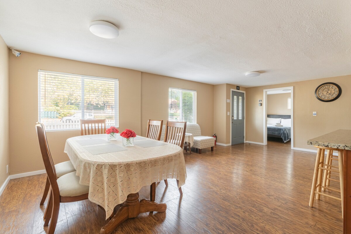 Mīļš, mājīga un ērta māja ar lieliem iežogotiem priekšpagalma un aizmugurējiem pagalmiem. Jauns siltumsūknis siltumam un gaisa kondicionēšanai. Divas guļamistabas ar divguļamām gultām, kumodes, skapji, gultasveļa. Dzīvojamajā zonā ir liela sekcija ar Roku TV, kamīns. Liela guļamistaba ir vērsta pret māju ar melniem aizkariem. Mazāka 2. guļamistaba paveras pār apbrīnojamo pagalmu. Pilna izmēra veļas mazgājamā mašīna/žāvētājs. Liela vannasistaba ar brīnišķīgu ūdens spiedienu. Pilnībā aprīkota virtuve ar lielu ēdamzonu/galdu. Ugunskura vieta un neliela terase.