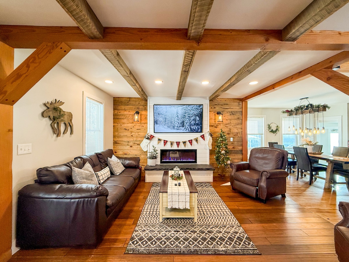 Summit View Chalet @ Stratton ir ideāla VT atpūtas vieta dažu minūšu brauciena attālumā no Mančestras, tieši pāri ieejai no Stratton 27 Hole čempionāta golfa laukuma. Skaisti pārveidots! Atpūtieties burbuļvannā uz klāja ar tiešu skatu uz virsotni jebkurā gadalaikā. Izbaudiet transporta piekļuvi pacēlājiem, dažu minūšu gājiena attālumā no sniega motocikliem, pārgājieniem, smalkām maltītēm un iepirkšanās. Ērtas naktsmītnes 6 pieaugušajiem un 5 bērniem. Ideāli piemērots 2 ģimenēm, lai izbaudītu jebkuru sezonu Dienvidu Vermontas skaistajos Zaļajos kalnos!