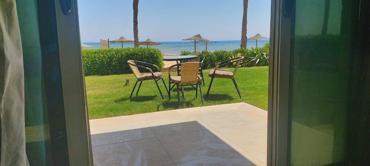 Viena veida, krāšņa pirmās rindas plaša 110 kv.m 2 guļamistabu pludmales māja ar Master en-suite guļamistabu.. No šīs elpu aizraujošās villas paveras satriecošs skats! MIERS ir jūtams uzreiz, kad jūs ieejat... lieliski un droši bērniem. Luksusa apdare un furnitūra piedāvā izcilu pieredzi, nemaz nerunājot par itāļu pārsteigumu kafijas cienītājiem kafijas cienītājiem ;) Netflix & BEIN sports! Pludmale/baseins soļu attālumā, jauks pludmales restorāns un supertirgus (ar piegādi) kompleksa iekšpusē. Sapņi/Seoudi tirgi 5 minūšu/10 minūšu brauciena attālumā.