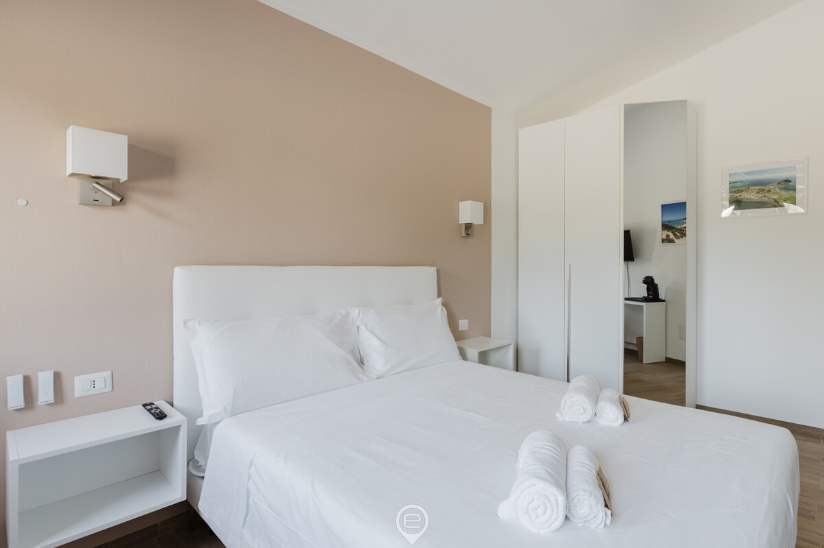 Jauns, neatkarīgs 30 kv. m studijas tipa dzīvoklis ar lielu terasi, kas aprīkota ēšanai un sauļošanai. Akmens metiens no jūras, no kura paveras elpu aizraujošs skats uz Cagliari līci un slaveno Velna segu. Jums būs iespēja apbrīnot jūru, ērti guļot uz gultas. Atrodas villas pirmajā stāvā ar neatkarīgu piekļuvi, izmantojot ārējas kāpnes. Aprīkots ar visām ērtībām: minivirtuvi, dušu, ledusskapi, TV, Wi-Fi, gaisa kondicionieri, gultasveļu, dvieļiem, pludmales dvieļiem un lietussargu.