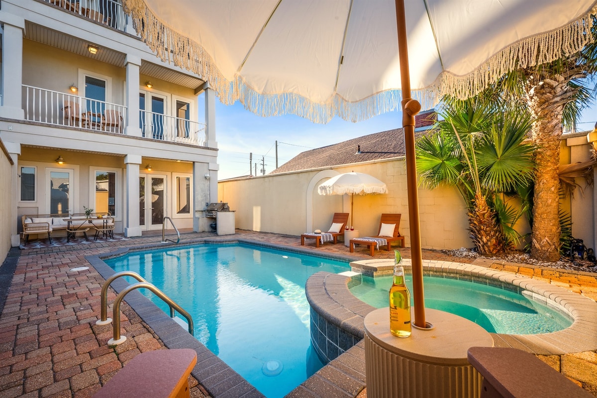 Soļi līdz pludmalei un 30A ☀️🏖️🌵 Šis mājoklis ir jūsu privātā oāze, kas atrodas tikai aptuveni 3 minūšu gājiena attālumā no baltajām smilšu pludmalēm un smaragdzaļajiem ūdeņiem Panamasitibīčā. Ideāli piemērots grupu ceļojumiem, kuros var nakšņot līdz 15 cilvēkiem. Tikko atjaunotas un nevainojami iekārtotas telpas nodrošina pilnībā aprīkotu virtuvi, kafijas automātu, ātrgaitas Wi-Fi, 4 Roku TV, grilu, pielāgota dizaina divstāvu gultas, luksusa dekorus un papildērtības, lielu pazemes apsildāmu baseinu ar sauļošanās grīdu un ekskluzīvu privātu pagalmu ar mini putu golfa laukumu ⛳️