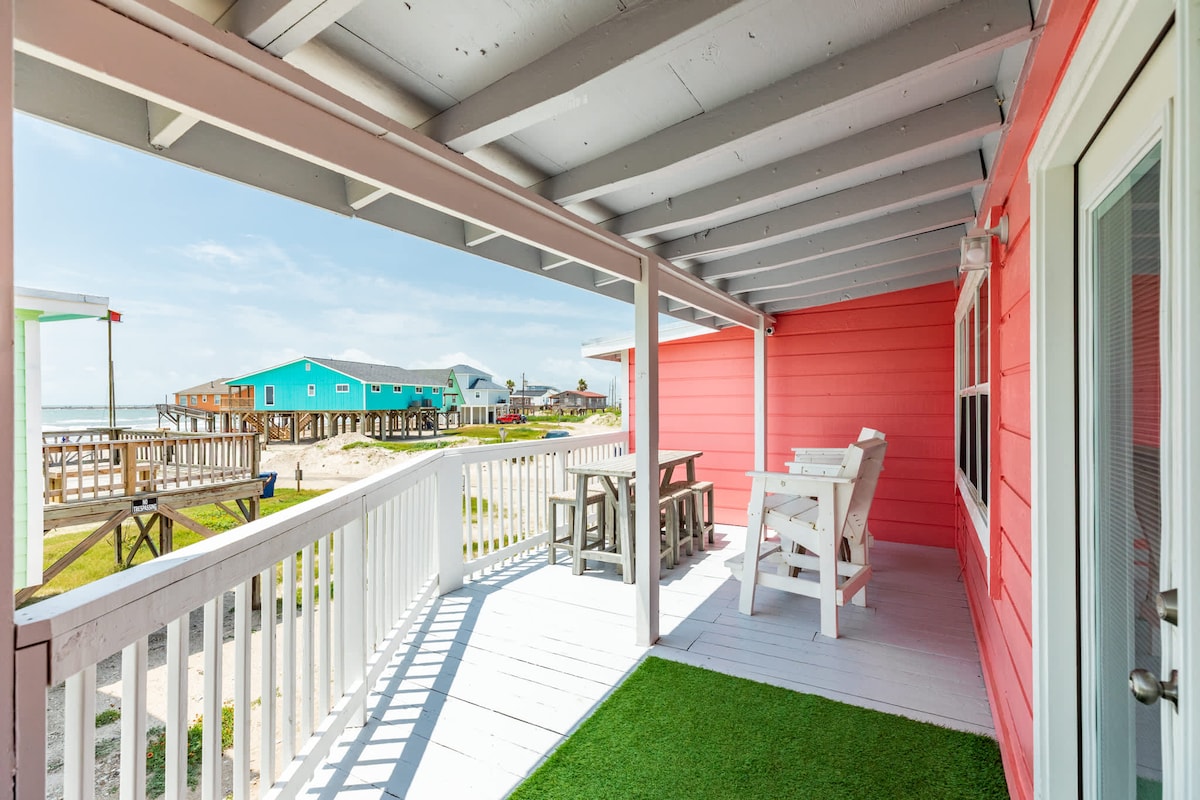 JAUNA pludmales konstrukcija! Patiesi vienradzis:🦄 ATRAŠANĀS VIETA, GREZNĪBA un tik jauki, lai būtu JAUNUMS! Atrodas dažu soļu attālumā no labākajiem restorāniem un pludmales Surfside! Izbaudiet šūpuļtīklus un spēles zem mājas. Kāpiet pa kāpnēm uz lielisku ēnainu klāju ar skatu no San Luis Pass līdz pat molam! Vairāk nekā 180 grādu netraucēti skati. Guļamistabas, kas atvērtas SunDeck un zvaigžņu vērošanai ar 🔥 ugunskura vietu YouTube Beachfront Luxe video 125 $ uzkopšanas maksa un tikai 75 $ par ne vairāk kā diviem mīļdzīvniekiem par visu uzturēšanās laiku!