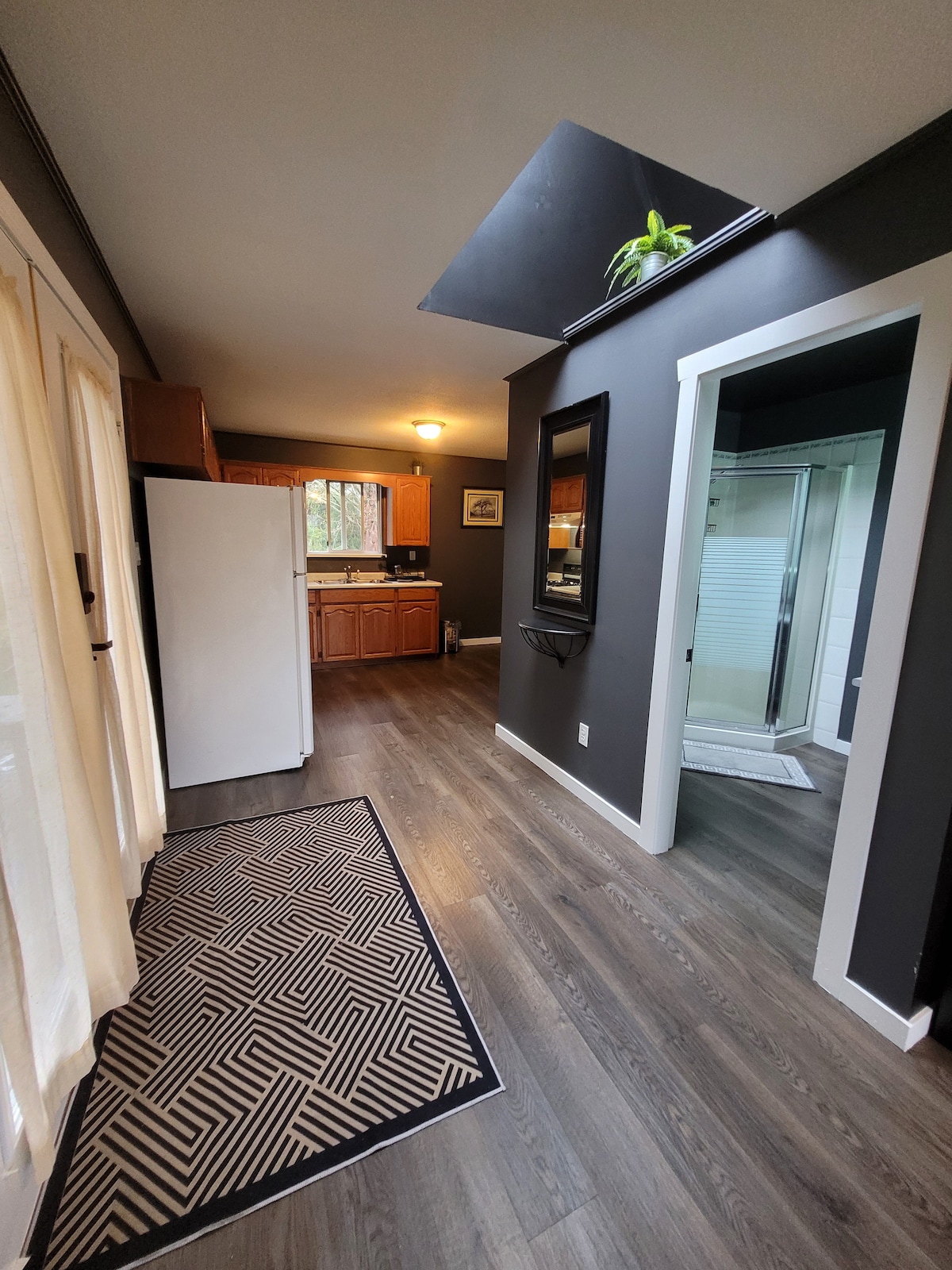 1 BR ar dušu, Liv Rm, virtuvīte, televizors, parks, Wi-Fi