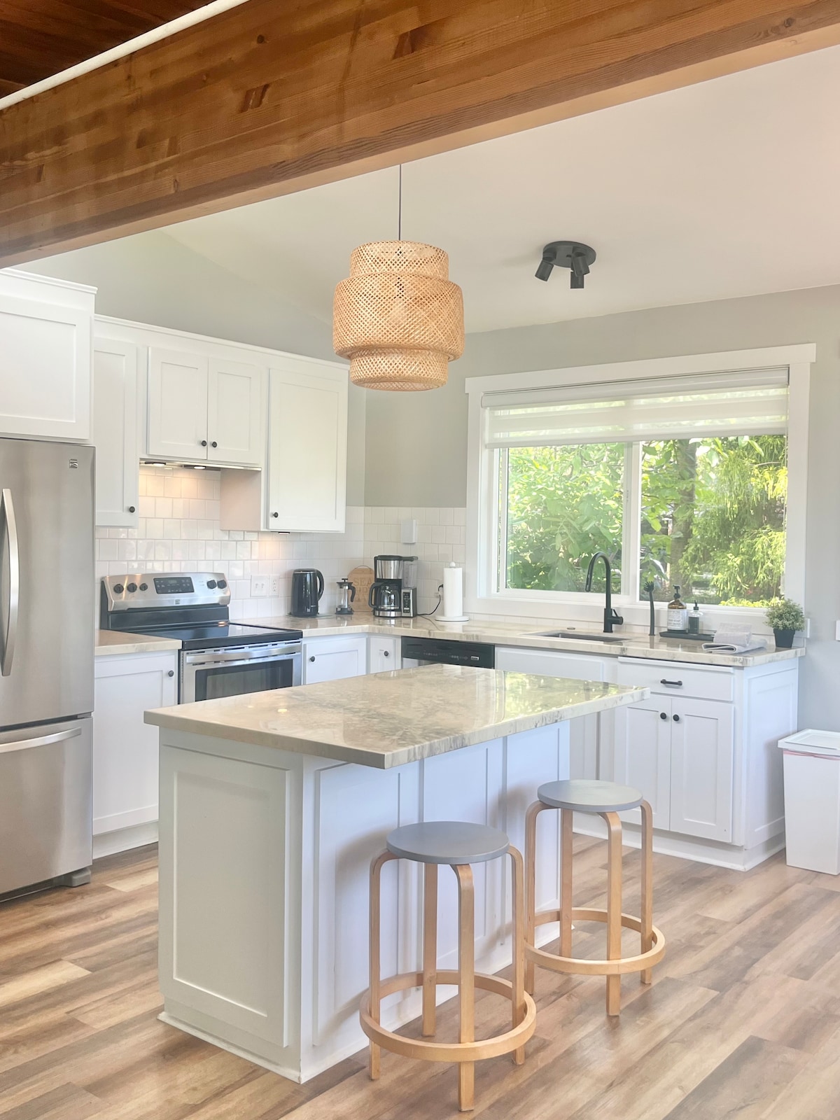 Tikko izremontēts 600 kvadrātpēdu spilgts un mājīgs komforts. Pludmales stila dekors, lai jūs varētu doties atvaļinājuma režīmā ar mājokļa sajūtu ārpus mājām. Ideāli piemērots darījumu braucieniem vai izklaidei. Iekļauts 5G WiFi. Iekļauts Telus Cable, Netflix, Prime, Disney un Apple TV. Pilnībā aprīkota privāta virtuve ar trauku mazgājamo mašīnu. 1 bdrm ar divguļamo gultu un luksusa augstas klases matraci un jaunu divguļamo dīvāngultu viesistabā. Suite numurā iekļauta veļas mazgātava ar mazgāšanas līdzekļiem. Labi apgaismota stāvvieta uz ielas, kāpnes līdz ieejai.