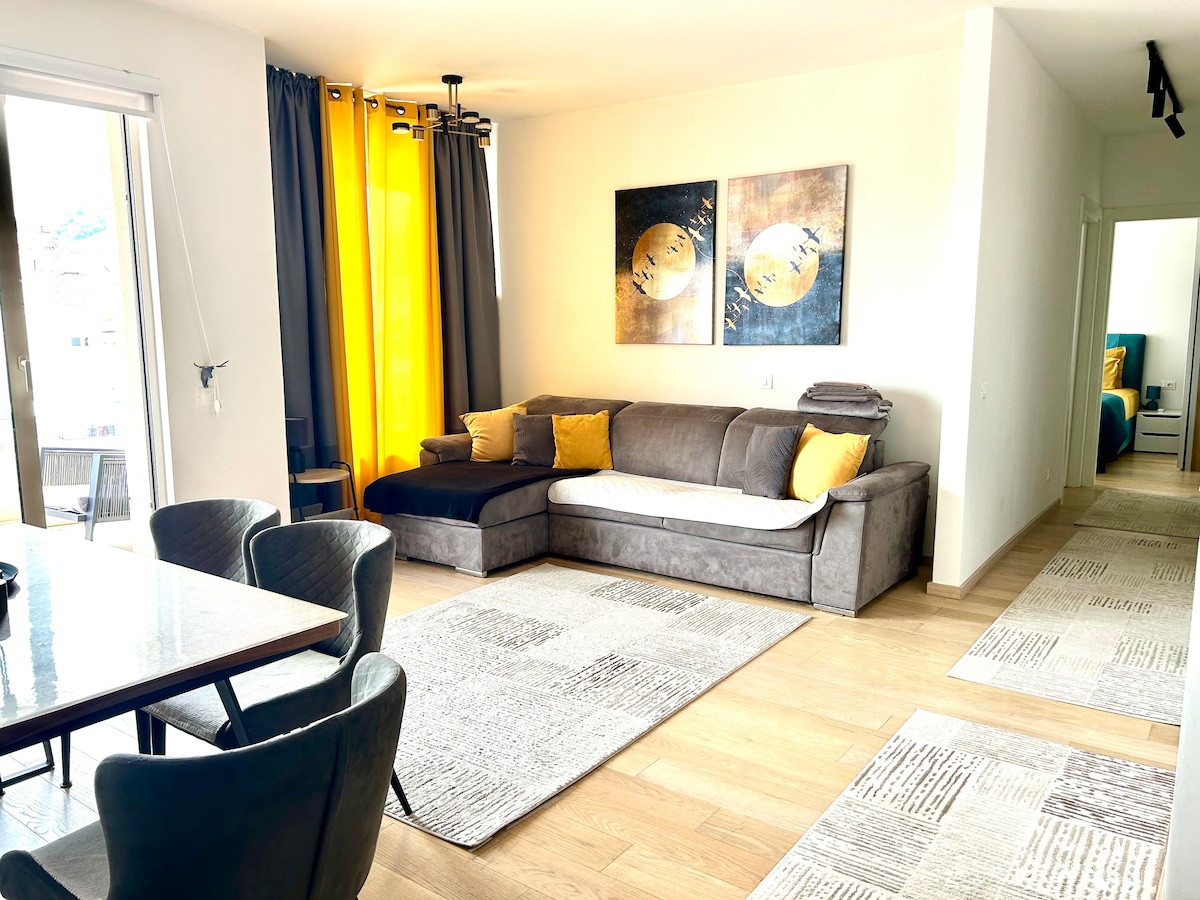 Šis stilīgais un greznais dzīvoklis, kas atrodas pašā Budvas sirdī, *TQ Plaza tirdzniecības centrā*, ir ideāla iespēja tiem, kuri vēlas baudīt ērtas un centrālas brīvdienas ar augstu drošības līmeni! Vecpilsēta, restorāni un kafejnīcas piekrastē atrodas 100 metru attālumā, un jūra un pludmales atrodas tikai 150 metru attālumā!