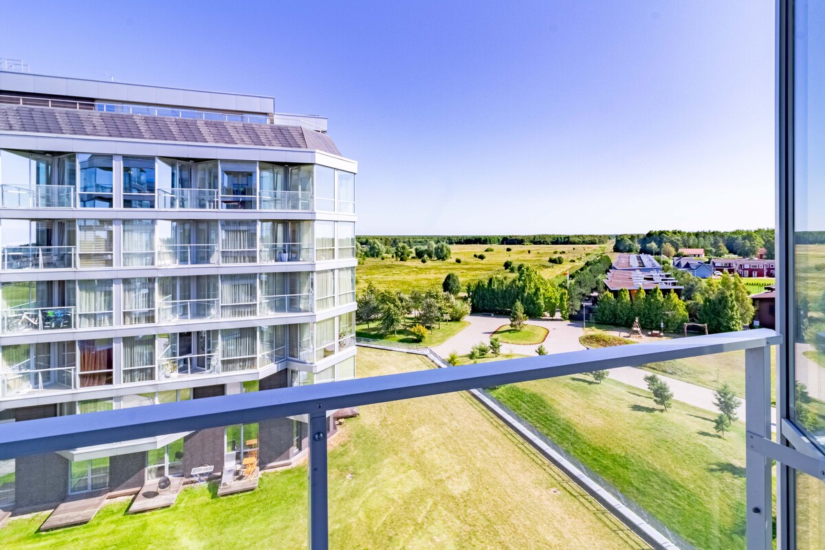 Stylish 2BR Seaside Apartment with Panoramic Views Modern 2-bedroom, 2-bathroom apartment in the Elija complex, featuring stunning sea views. Just minutes from the beach and pine forest. • Panoramic windows with sea views • Fully equipped kitchen • Master bedroom + sofa bed • 2 workspaces with high-speed internet • 12km from Palanga center • Near scenic Ošupis trail Perfect for beach lovers and remote workers alike!