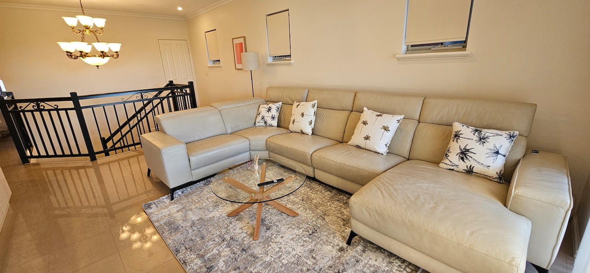 IKNEDĒĻAS /IKMĒNEŠA ATLAIDES. Plaša 2 stāvu RINDAS MĀJA. Skats uz okeānu, klusa apkaime, 2 dzīvojamās istabas, 2 guļamistabas un dīvāngulta. Piemērots pāriem, ģimenēm, darījumu viesiem. 1. guļamistabā ir divguļamā gulta (Queen). 2. guļamistabā ir divguļamās un vienguļamās gultas. Apakšstāvā esošajā dzīvojamajā istabā ir dīvāngulta. Augšstāvā ēdamistaba ar 6 krēslu galdu, liela biroja zona ar 2 krēsliem, milzīgs rakstāmgalds, printeris un laminators. Balkonā ir grils ar galdu un bāra krēsliem. Atzīmējiet @theresidenceatrockingham Facebook, lai iegūtu vairāk fotoattēlu un videoklipu.