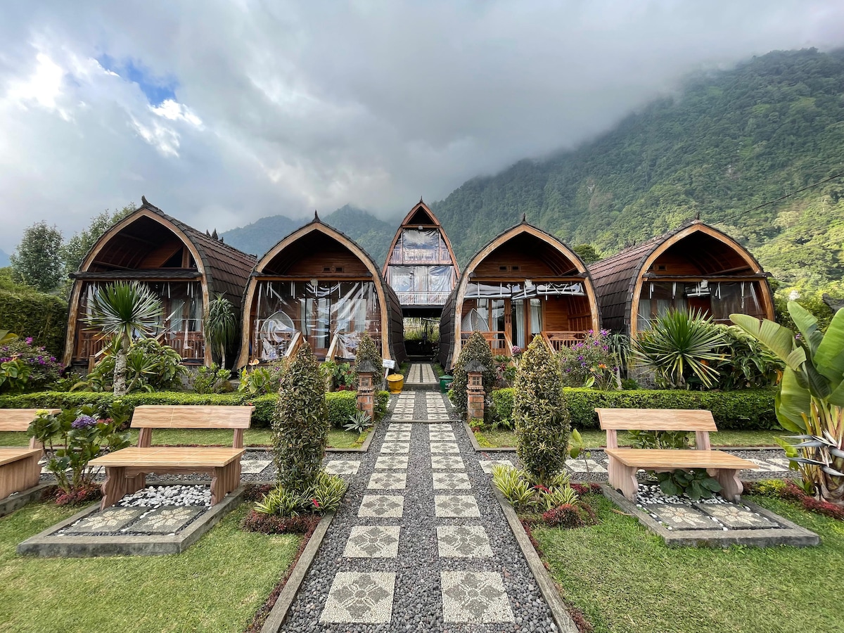 Četru guļamistabu namiņš, ko esam atjaunojuši, piemērojot slēpošanas kalnu namiņa koncepciju. Katrā "suite" numurā ir vara vanna, kas paveras uz aizsargājamu mežu. Skati ir neticami, ja fonā paveras skats uz Bujana ezeru, Handara golfa laukumu un stāviem kalniem. 1400 m. virs jūras līmeņa mūs iepriecina mūžīgi pavasara laikapstākļi dienas laikā ar vēsām naktīm. Mosties agri no rīta, lai sajustu skujkoku smaržu, un dodies pastaigā, lai apskatītu džungļu vistas, briežus, cielaviņas un visdažādākos putnus.