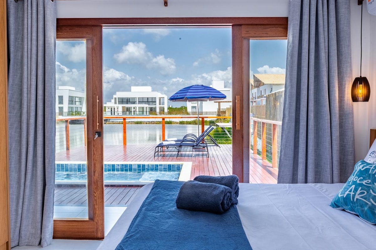 Mūsu burvīgais un romantiskais bungalo ir būvēts no koka, uz smilšu kāpas, kas vērsta uz okeānu. Tas atrodas pie 100 m īpašuma okeāna krastā, Fazenda Maison, kas ir 14 hektāru privāta teritorija. Gaisa kondicioniera sadalīšana Interneta wWifi 300 MBps optiskā šķiedra Iekļauts uzkopšanas pakalpojums katru dienu Divguļamā gulta (King) Unikāla darba telpa - galds ar skatu uz okeānu Privāta dārza duša brīvā dabā Baseins (koplietojams ar trim mājām). Bārbekjū atrodas ezera krastā, un tas ir kopīgs ar vēl vienu māju. Kajaki, prancha de surf, inflaveis...bez maksas