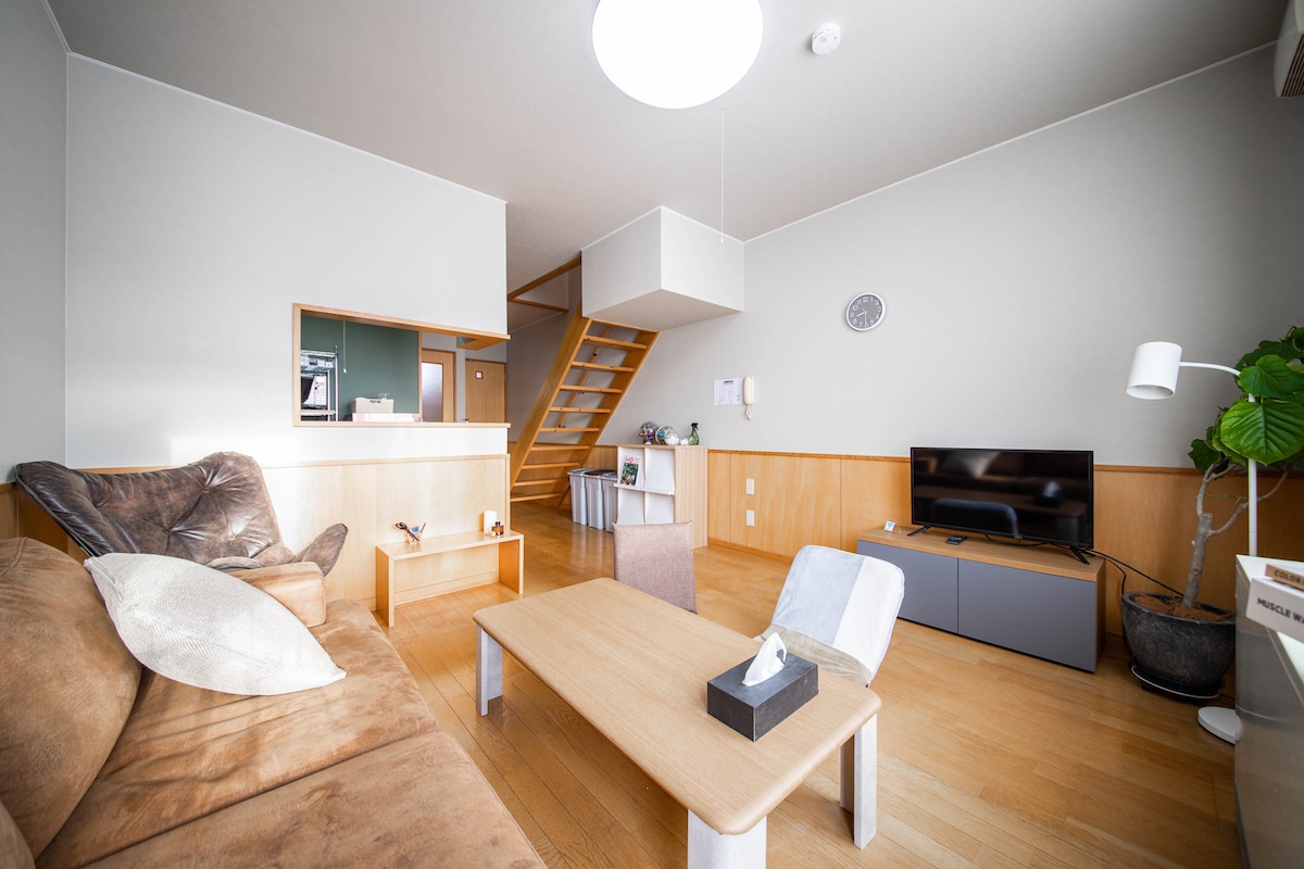 Bezmaksas vienvirziena taksometra brauciens no Asahikavas lidostas vai stacijas, ja uzturaties divas naktis vai ilgāk! Izbaudiet visaugstāk novērtēto komfortu mūsu pavisam jaunajā dizaineru mājā. Katrs viesis drošības nolūkos saņem unikālu PIN kodu 🔐. Bērni var droši spēlēties privātajā pagalmā vai baudīt grilētu maltīti 🍖 siltākos gadalaikos. Lieliska piekļuve – tikai 8 minūšu attālumā no Asahikawa-Kita IC, 3 minūšu gājiena attālumā no JR Nagayama stacijas un 20 minūšu attālumā no Asahiyama zooloģiskā dārza vai slēpošanas kūrortiem. Pilnībā aprīkota darba vieta attālinātam darbam. Ideāli piemērots ģimenēm vai darījumu braucieniem!