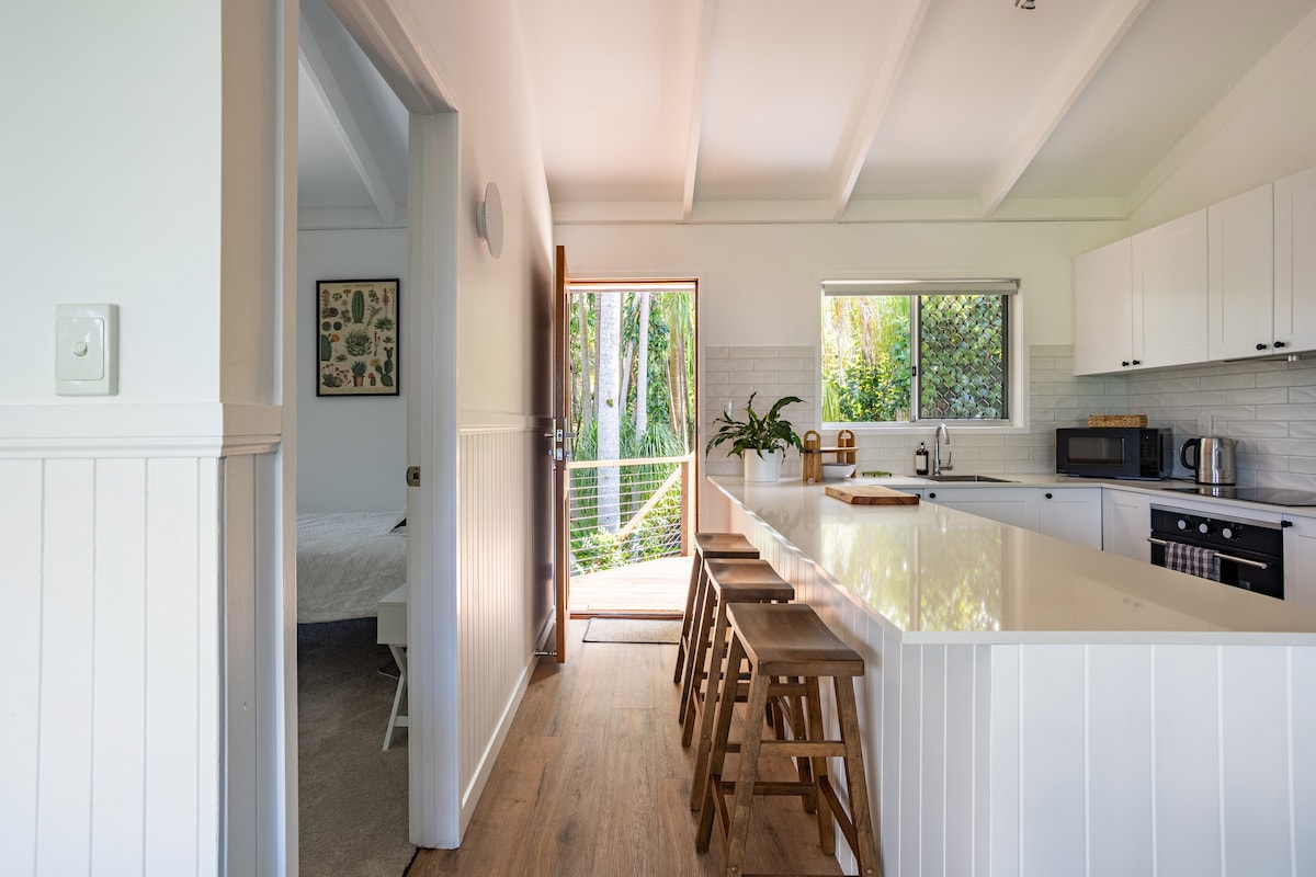 Atgriezieties pie dabas mūsu kārtīgajā un sakoptajā sīkmājiņā 10 akru platībā Tamborine Village. 6 km Tamborīnas kalns 2,7 km Albert Valley Wines 4,5 km Plunkett Villa 6 km, Woodstock ferma 2 km no Pogas ķirzaka Pārsteidzoši plašs un ar visu nepieciešamo klusai nakšņošanai. Nelielais mājoklis atrodas aptuveni 60 m attālumā no galvenās dzīvesvietas Divguļamā gulta Vienguļamā izvelkamā gulta Iekārtota plaša duša Virtuve ar indukcijas plīts virsmu un mikroviļņu krāsni Veļas mazgājamā mašīna Televizors un Wi-Fi Āra terase Suņi ir atļauti. Striktu aizliegums smēķēt iekštelpās.