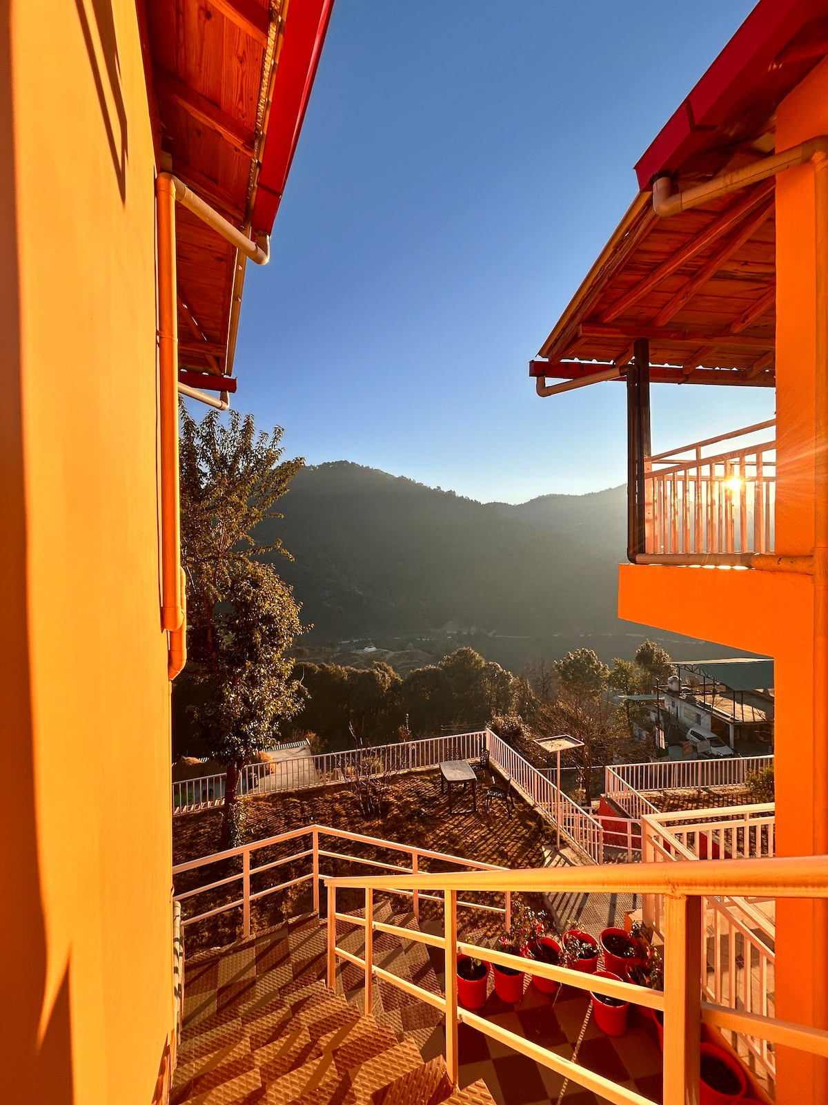 Laipni lūdzam mūsu mierīgajā Ivy Open-Plan Suite numurā, Sunrise Haven ar terasi, dārzu un kalnu/ieleju Muktešvarā. 🛜 Ātrgaitas Wi-Fi Rezerves 🔋 barošana Nodrošināta ☕️ elektriskā tējkanna 🍽️ Iekšējā virtuve ar a la carte maltītēm, ko pasniedz numurā vai pusdieno terasē 🚙 Autostāvvieta telpās ar vārtiem vai 10 m attālumā no ceļa puses no īpašuma ieejas Vairāk nekā 🌹100 augu šķirņu, lai atsvaidzinātu garastāvokli 🏔️ Skaidrā dienā no terases ir redzamas himalajiešu virsotnes Patika atmosfēra? Rezervējiet tūlīt un izbaudiet to