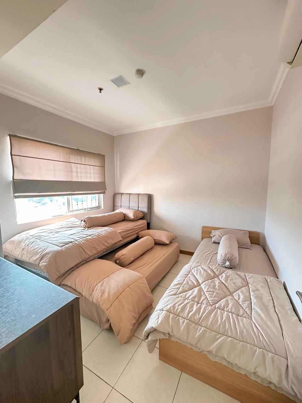 My concern is providing good quality for your stay: New Laundry for bedsheet, blanket & towels without any charges. Wifi, water heater, Air Purifier also installed. Facilities: Aqua Gym, Pool, gym, sky garden, lounge, Parking Spot, & jogging track. Mini market are available beside the main gate. 5 Minutes to train (Rawabuaya Station) & busway (Rawabuaya), 20 Minutes to airport Near to toll road, malls and other amenities. Parking fee is included for staying more than 12 night.