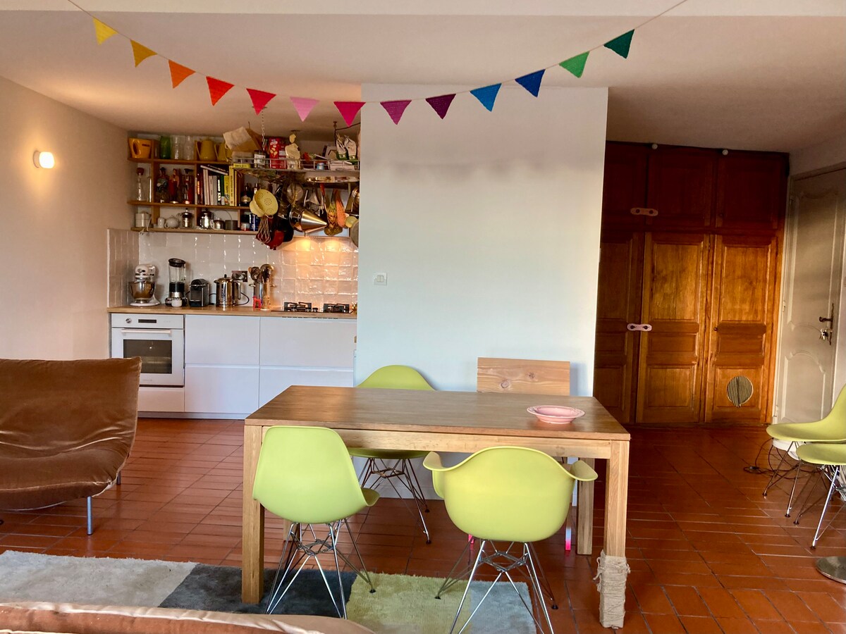 Skaists 50 m2 lofts vienā līmenī, atjaunots saskaņā ar aizsargājamo teritoriju. Jaukā gājēju ielā Roketes rajonā, 2 soļu attālumā no Arlas centra un Ronas krastiem, kur varat pastaigāties, skriet vai pastaigāties ar suni. Jūs varat izbaudīt apkārtnes dzīvi un apmeklēt Arlu un tās dārgumus. MĀJOKLIS, KO 3 ZVAIGZNES KLASIFICĒ "BOUCHES DU RHONE TOURISME" Jūsu mīļdzīvnieki ir laipni gaidīti.