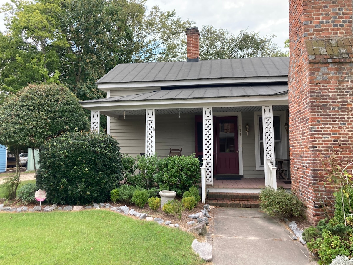 As part of the oldest house in Tarboro (built 1785), this two bedroom apartment is located in the heart of the historic district (including the newly enacted social district!) in downtown Tarboro. Come enjoy all Tarboro has to offer while sitting on the front porch or the screened in back porch. The unit has one king bed and one full bed, easily fitting 4 people. There is a full kitchen and one bathroom with a modern walk-in shower.