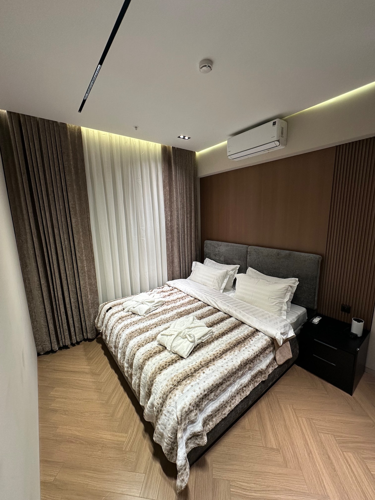 Welcome to a stylish and cozy apartment in the prestigious Parkwood residential complex with its own green park, located in the heart of Tashkent. A spacious terrace for morning coffee and relaxation. Heated floors, air conditioning, Wi-Fi, 2 TVs, dishwasher, and washing machine—everything you need for a comfortable stay. All necessary amenities are within walking distance. The apartment is ideal for both business trips and vacations. Book your corner of nature in the center of the capital!