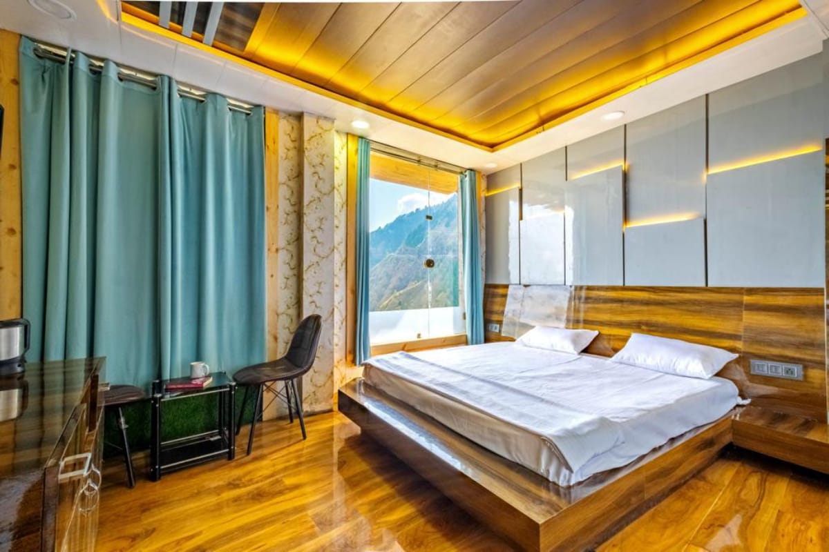Laipni lūdzam Sapphire Suites, Musūri – jūsu ideālajā kalnu atpūtas vietā! Šis numurs ar skatu uz kalniem 2 piedāvā komfortu, greznību un satriecošu skatu uz Himalajiem – tas ir paredzēts viesiem, kuri novērtē mieru, privātumu un augstākās klases viesmīlību. ✨ Kas jums patiks: Plaša un eleganti iekārtota guļamistaba ar mājīgu apgaismojumu Privāts balkons ar apburošu skatu uz kalniem un ieleju Divguļamā gulta (Queen) ar augstākās kvalitātes gultasveļu Moderna vannasistaba ar karsto ūdeni visu diennakti Bezmaksas Wi-Fi un viedais LED televizors