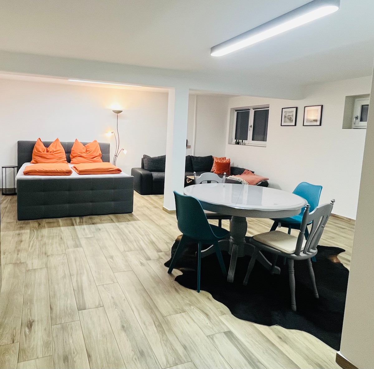 Neu renovierte und neu eingerichtete 2 Zimmerwohnung, 57 qm, Wohnzimmer, Schlafzimmer, Küche, Flur, Bad. Zentral und ruhig gelegen. Für 2 Personen. Wohnzimmer mit Schlafcouch ausgerüstet, eventuell weitere Person möglich. Die Wohnung wird für Feriengäste und Geschäftsleute angeboten. Keine Monteurswohnung. Rauchen in jeglicher Form in der Wohnung und auf dem Balkon nicht erlaubt.