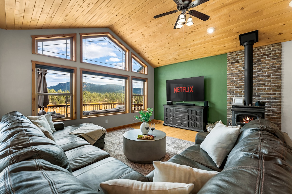 Bring the whole family to this great place with lots of room for fun! • Mountain views in the front yard & back • 2.25 acres • Hot tub • Sleeps 12 • 4 bathrooms • Kitchen & kitchenette • 2 living rooms & a game room • Keurig coffee, French press, & drip coffee • Free public shared fitness gym next door • 15 mins to Cripple Creek gold mining, cafe, & casinos • 20 mins to Wolf Sanctuary • 35 mins to 11 Mile Reservoir • 40 mins to Pikes Peak Entrance • 1 hr from the CO Springs airport