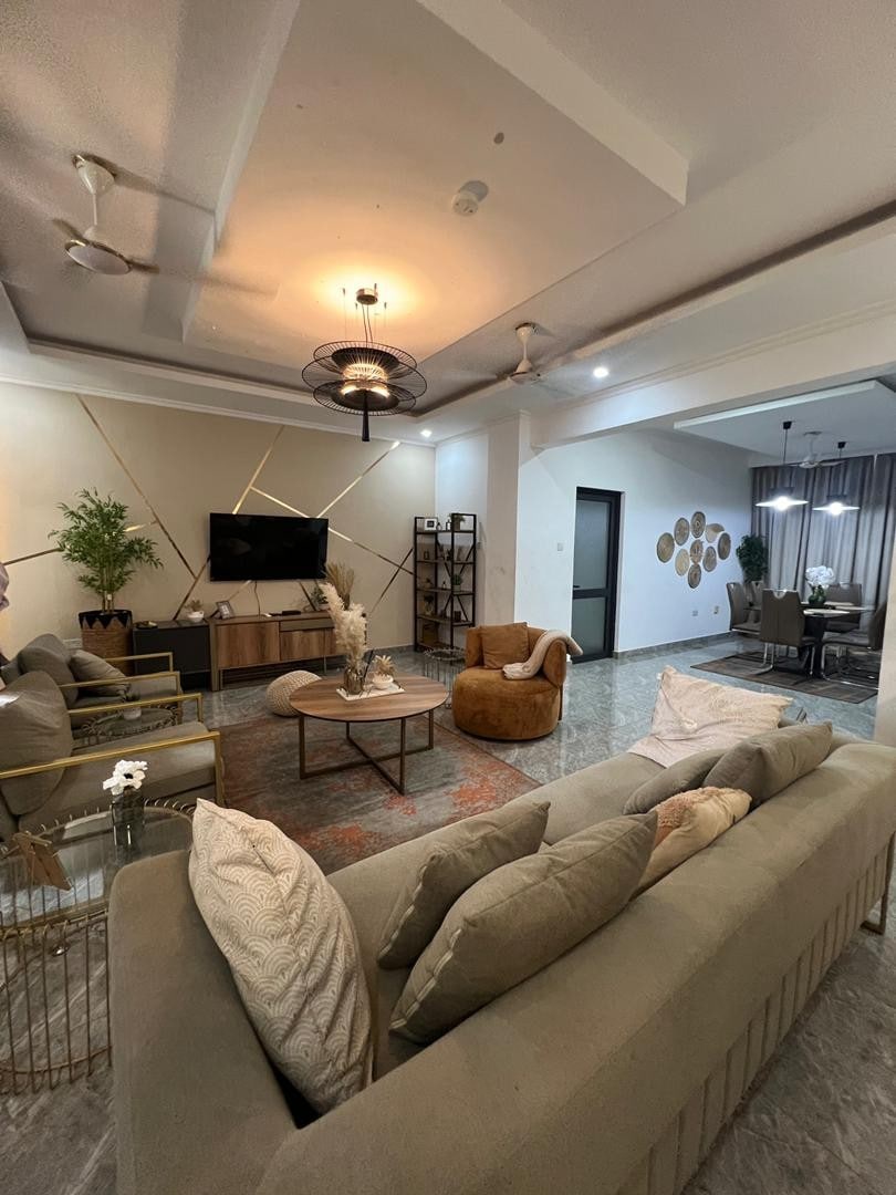 Laipni lūdzam savā mājoklī ārpus mājām Temas 3. kopienā - īpaši veidotā Airbnb mājoklī, kas veidots ar jūsu komfortu un drošību. Šis mierīgais īpašums atrodas tikai 35 minūšu brauciena attālumā no Kotokas starptautiskās lidostas un piedāvā drošu vidi ar videonovērošanas kameru un pārvaldnieku uz vietas Aktualitātes: 3 guļamistabas ar atsevišķu ieeju — katrā istabā ir plīša "queen" izmēra gulta 75collu viedtelevīzija dzīvojamajā zonā 40collu televizori divās guļamistabās. Wi-Fi A/c un griestu ventilatori Pilnībā aprīkota virtuve Bezmaksas autostāvvieta
