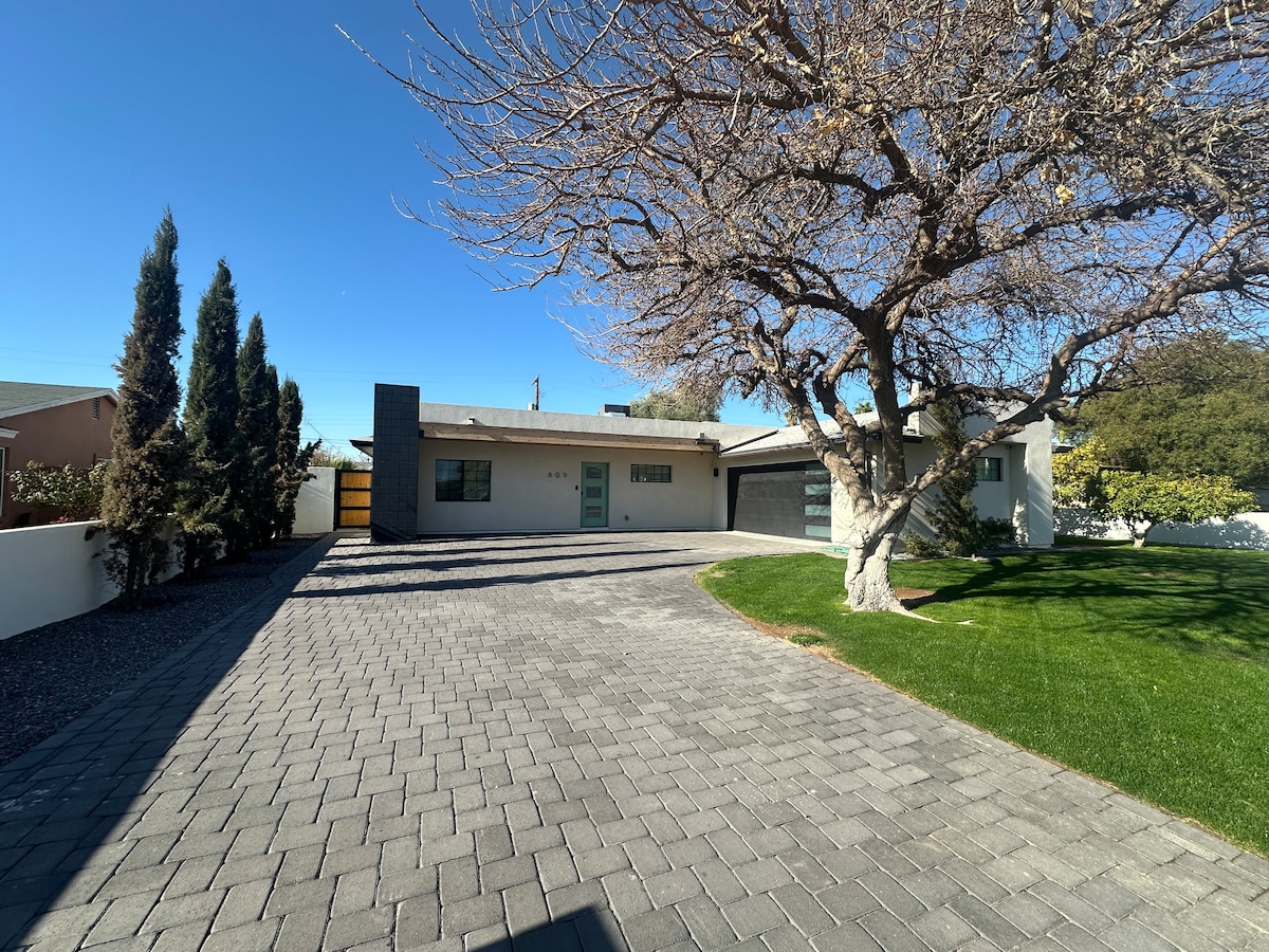 Laipni lūdzam ŠAJĀ MĀJĀ! Pielāgota moderna māja, kas atrodas 10 minūšu attālumā gan no Skotsdeilas vecpilsētas, gan Tempe Mill Avenue (3,5 jūdzes). ŠĪ MĀJA ir 2 guļamistabu un 1 vannasistaba, kurā ir pilnībā piekrauta virtuve, kurā ir atklāti koka griesti ar iebūvētiem jumta logiem, dabiski apgaismota vannasistaba, viesistaba, kas savienota ar privātu pagalmu ar ēnotu terasi, autostāvvietu ar piebraucamo ceļu un veļas mazgātavu.