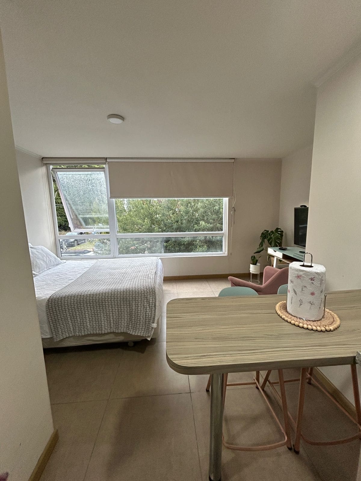 Izbaudiet stilīgu piedzīvojumu šajā pilnībā aprīkotajā, centrālajā, modernajā dzīvoklī. Atrodas priviliģētajā Temuko rajonā, tikai 1 kvartāla attālumā no Casino Dreams, Mall Mirage un netālu no Mall Portal Temuco, bankām, restorāniem, aptiekām, krogiem utt. Papildērtības: Wi-Fi, viedtelevīzija 55, pilnībā aprīkota un neatkarīga virtuve, terase, fēns, palagi un dvieļi Koplietošanas telpas: sporta zāle un skaists skats. Citas lietas, kas jāņem vērā - ierašanās ar elektronisko slēdzeni.