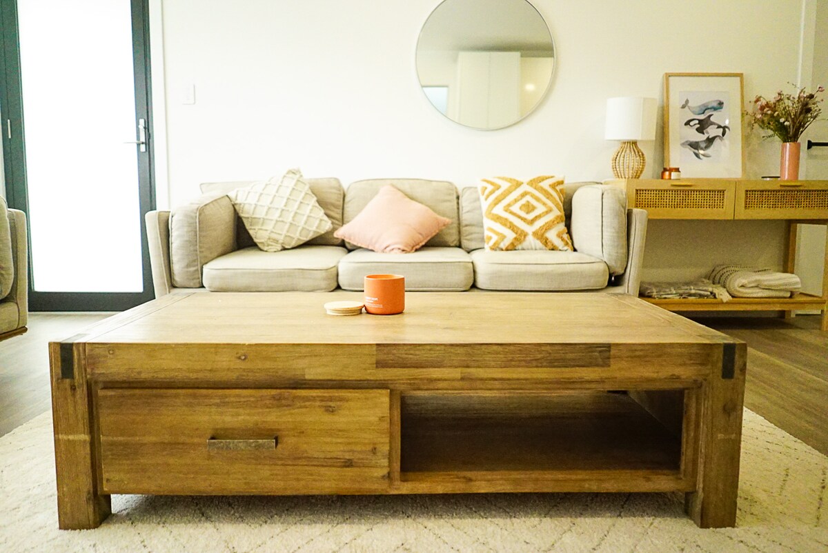 Laipni lūdzam Bay Villa – privāta, mierīga atpūtas vieta ar 1 guļamistabu tikai 2 minūšu attālumā no pludmalēm, krūmu pastaigām, kafejnīcām un krogiem. Stilīga, jaunuzcelta un viesu iecienīta vieta (⭐️4,9 no vairāk nekā 160 atsauksmēm) ir ideāla vieta, kur atpūsties un iepazīt centrālo piekrasti. Neatkarīgi no tā, vai esat šeit, lai aizbēgtu no nedēļas nogales vai uz ilgāku laiku, Bay Villa ir jūsu bāze viegliem rītiem, sāļām peldēm, labai kafijai un mierīgām naktīm.