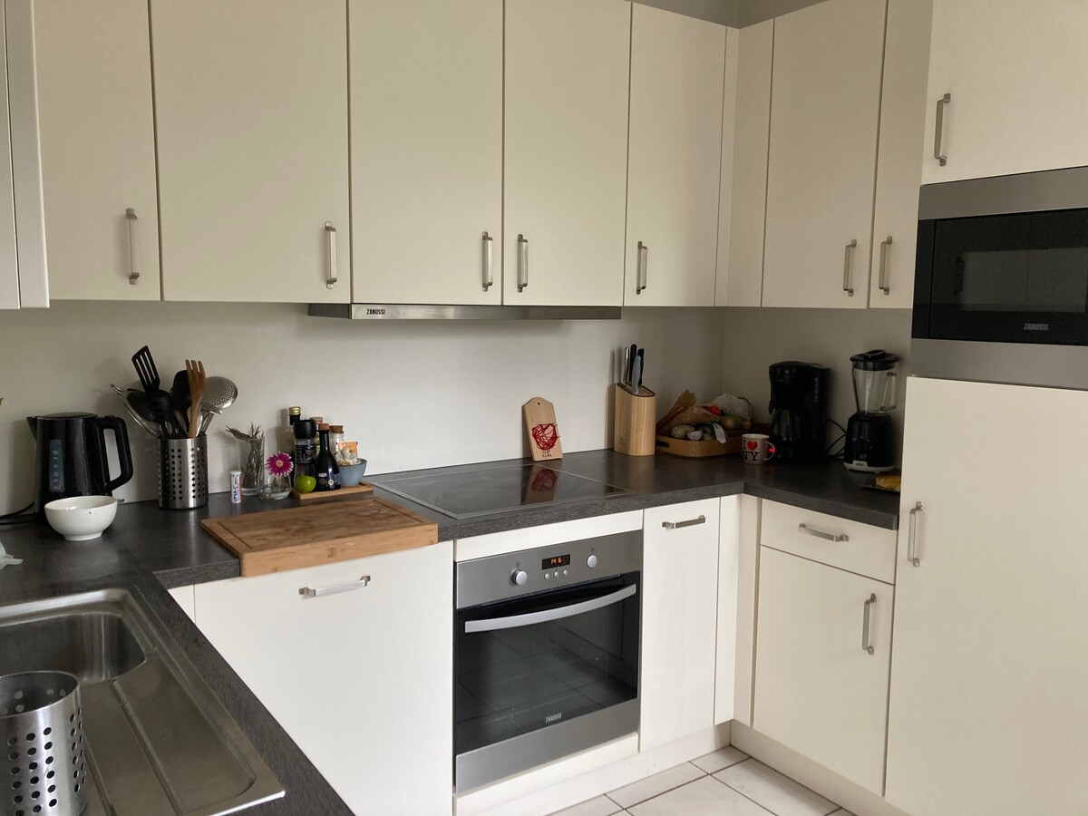 1 min attālumā no dzelzceļa stacijas, "dārza māja", kas atdalīta no galvenās mājas (kur mēs dzīvojam). atrodas vēsturiskā dārzā. Tā ir 70 m² ar dalīto līmeni un piedāvā izmitināšanu 6 cilvēkiem. Tajā ir ēdamgalds, televizors, netflix, Wi-Fi un pavisam jauna virtuve, neliela vannasistaba. Tiešs savienojums bij vilciens uz Briseles centrālo daļu un Lēvenu (20 min). Tas ir piemērots darījumu ceļotājiem, pāriem (arī ilgtermiņa), grupām un ģimenēm (6p 1 istabā, tikai īstermiņā)