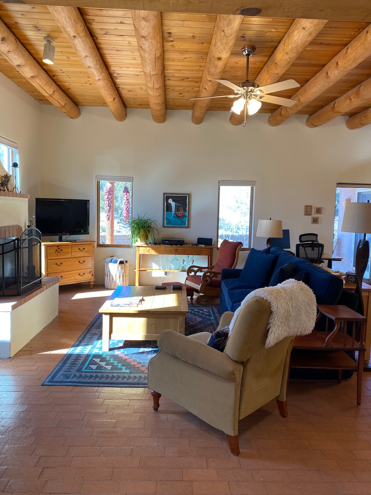 Liela, saulaina, autonoma studija ar pasakainu skatu uz kalniem. Privātā ieeja un privātā terase ar zelta zivtiņas dīķi. Pilnībā aprīkots. Divguļamā gulta, 3/4 vanna, virtuvīte un kamīns. Atrodas uz dienvidrietumiem no pilsētas uz 2,5 akriem ar 360 grādu skatu. Lieliska debesu vērošana. Netālu no Santafē slēpošanas baseina, Haidparka un citām āra vietām. 7 jūdžu attālumā no Plaza un Canyon Road, 10 jūdzes līdz Santafē operai, 60 jūdžu attālumā no Albukerkas. Ērta piekļuve 599 apvedceļam.